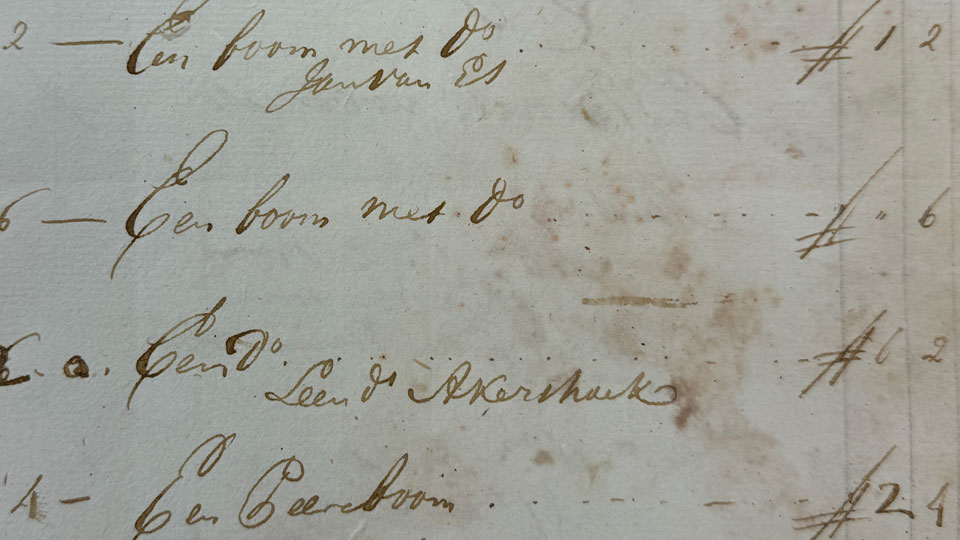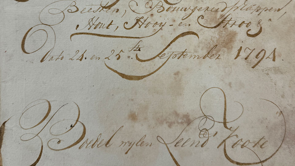 In einer 64 Seiten umfassenden Urkunde aus dem Jahr 1794 findet sich eine sehr detaillierte Liste des Inventars. Aufgeführt werden beispielsweise ein Korb Eier, ein Seil, ein Birnbaum, eine trächtige Kuh, Holzschuhe, ein Korb mit Honig, silberne und goldene Knöpfe usw. Jeder Gegenstand des Inventars wird einzeln beschrieben und bewertet.